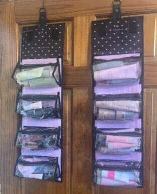 Behind every mirror is a pre-packed travel roll up bag with her name on it. Each roll up bag has the Beyond Ultimate miracle set in it.