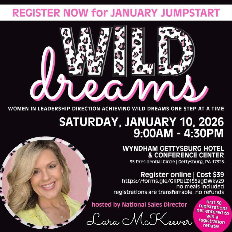 ⭐️ WILD Dreams January Jumpstart is in Gettysburg, PA on January 10, 2026! Coming up and registration is open! Expect great things and great things will happen. - Mary Kay AshPlan now to kick off the new year with the determination to achieve your WILD dreams with 🥳 inspiration & motivation, 🤓 education and training, and 🤩 fun with your Mary Kay sisters!